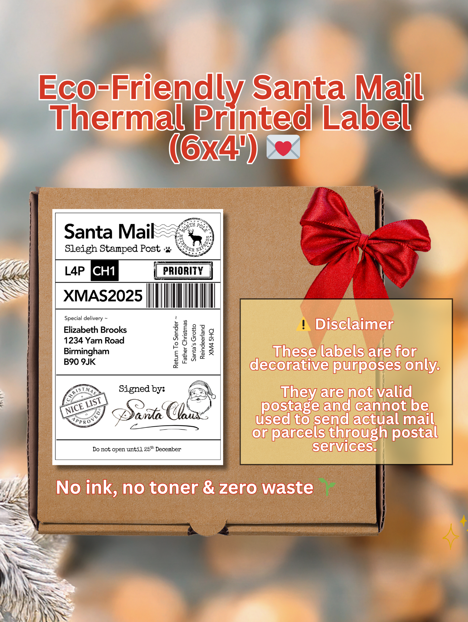 Bring a little extra magic to your Christmas packaging with these personalised Santa Mail labels. Each pack includes 5 custom 6x4 inch labels printed on eco-friendly thermal paper using a MUNBYN printer, which means no ink, no waste, just heat. It’s a greener, smarter way to dress up your festive deliveries.